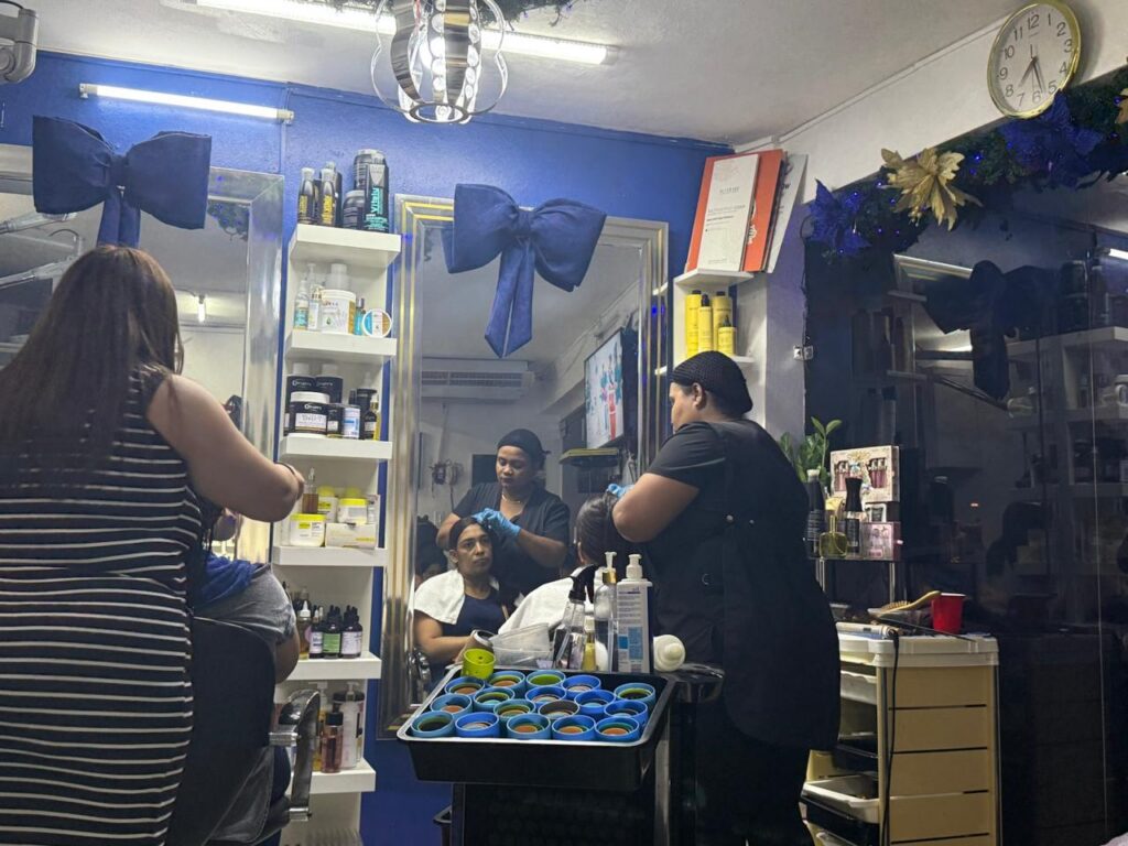 En barrios y centros comerciales se repite la misma escena: filas, turnos escritos en libretas, teléfonos sonando y estilistas que trabajan sin pausa. La Navidad no solo se vive en las casas, también se construye en estos pequeños espacios que funcionan como centros sociales informales.